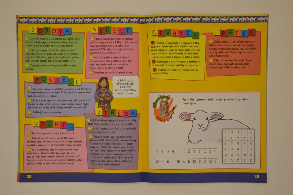 Přesto budou děti potřebovat také a především Vás, abyste jim pomohli vnést poselství o Boží lásce a milosti do života rodiny a dobře upevnit to, co se učí v sobotní školce. Promyslete si, kdy si vyhradíte čas na každodenní studium se svým dítětem. Během společných pobožností si spolu čtěte biblický příběh a úkol a také se zapojte do aktivit, které mají upevnit biblické poselství v dětském myšlení a cítění.