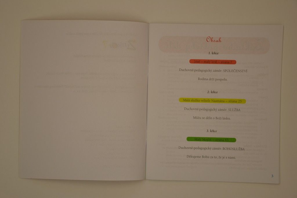 Možná přivítáte, že tyto lekce jdou paraelně s lekcemi pro děti vyššího věku. Stejné myšlenky jsou zdůrazňovány celý měsíc v obou katergoriích předškolního věku, avšak lekce pro děti vyššího předškolního věku obsahují více detailů daného příběhu.